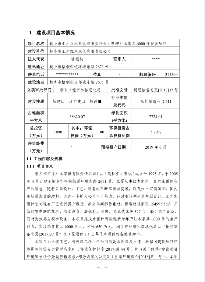 桐乡市汇才红木家俱有限责任公司 新增红木家具6000件技改项目