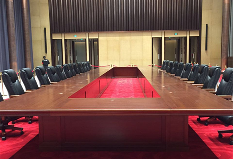 在这次峰会上,除了主会场的沙发,咖啡厅的所有红木家具以外,最具代表性的当属长16米,宽3.6米的会议长桌,它是汇才发展历程中制作的最长会议桌,耗时1个多月。