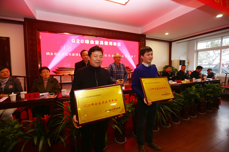 会议表彰了协会2016年度先进企业和先进个人,表决通过了新入会会员和人事变动。汇才红木荣获“G20国际峰会家具供应商”、“传承文化 创新开发企业”、“园林化示范企业”、“红木产业鲁班精神传承人”称号。