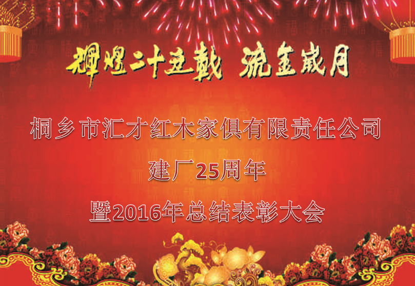 热烈庆祝桐乡市汇才红木家俱有限责任公司建厂25周年暨