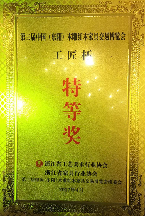 展会上,公司以一批具有典型“苏作”特色的红木家具亮相,并吸引了众多红木家具爱好者、同行同仁和业界专家人士的眼球,选送参展的作品均获赞赏。其中,“月洞式门罩架子床”荣获“特等奖”。