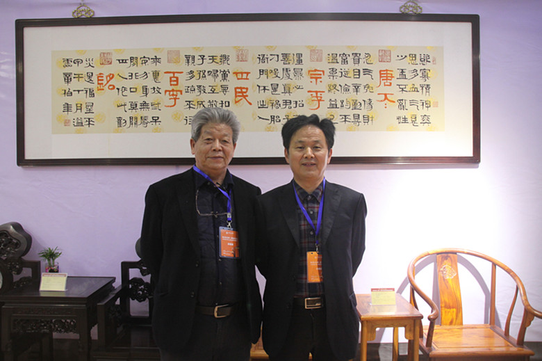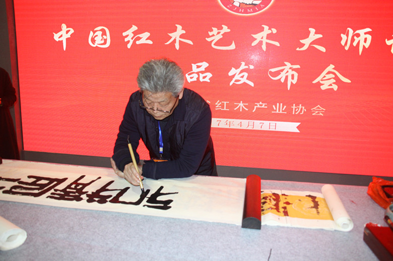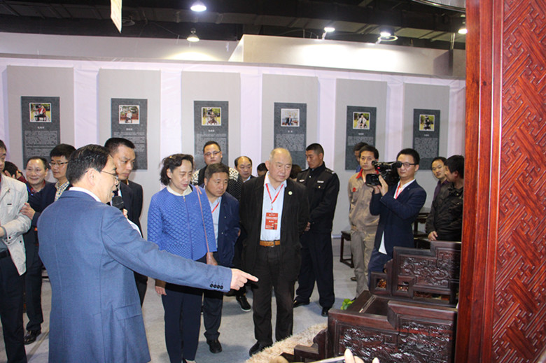 值得一提的是,中国著名书法家章柏年与公司董事长一同亲临现场,在省红木产业协会的邀请下为本次展会题字“工匠精神”。