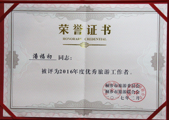 会议总结表彰了2016年度优秀旅游企业和先进个人,公司荣获“优秀旅游企业”,董事长荣获“优秀旅游工作者”。