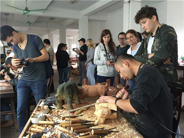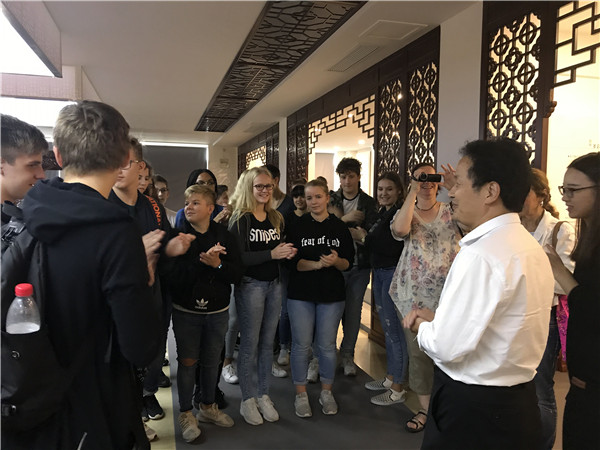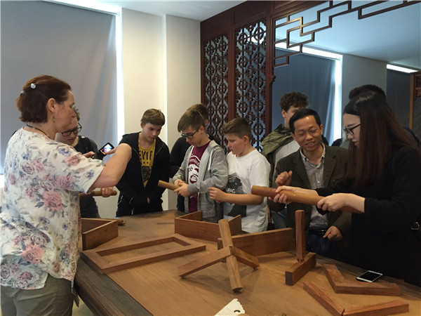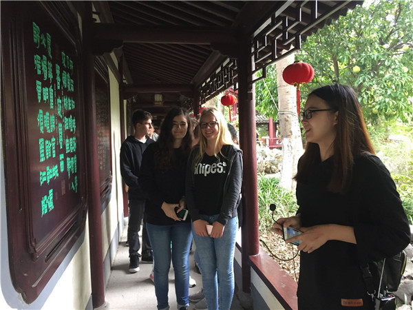 10月18日上午,德国马尔市·洛坎普一级文理中学交流团的26名师生走进汇才红木,参观中国苏作红木文化博览园,领略中国传统文化、红木文化的魅力,感受江南园林的独特韵味。