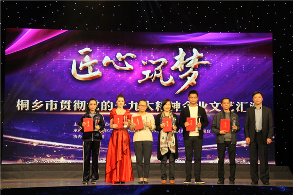 昨日下午,“匠心筑梦”桐乡市贯彻党的十九大精神企业文艺汇演在市科技会展中心大剧院拉开帷幕。经过前期选拔,由全市15家企事业单位选送的节目脱颖而出,进入当天决赛,节目均彰显出企业对党的十九大精神学习贯彻落实的主动担当。