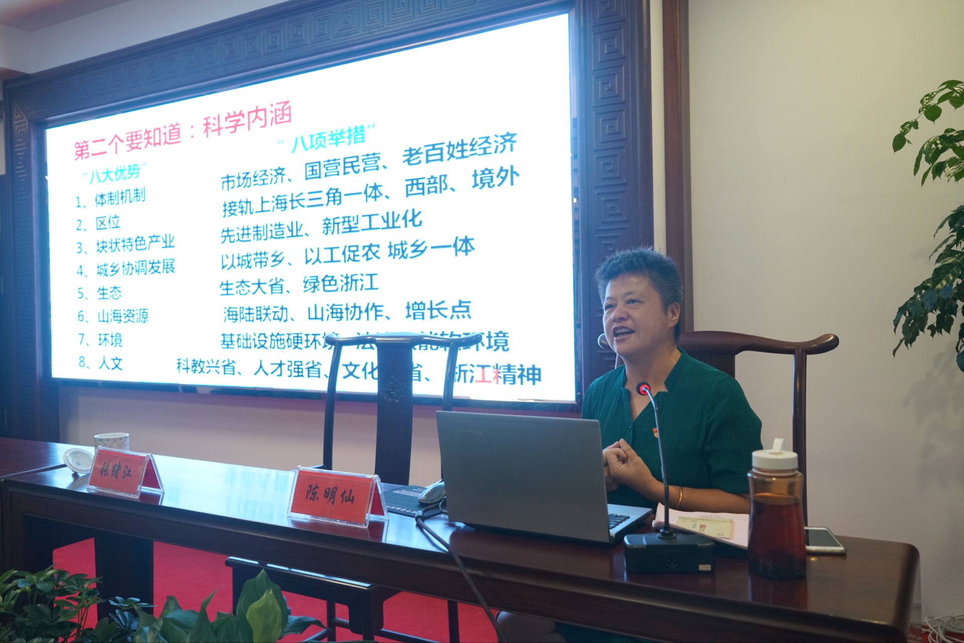 街道党委委员、办事处副主任陆炎伟作了涉企政策宣讲,市委党校老师陈明仙为与会人员上了一堂“八八战略”党课。