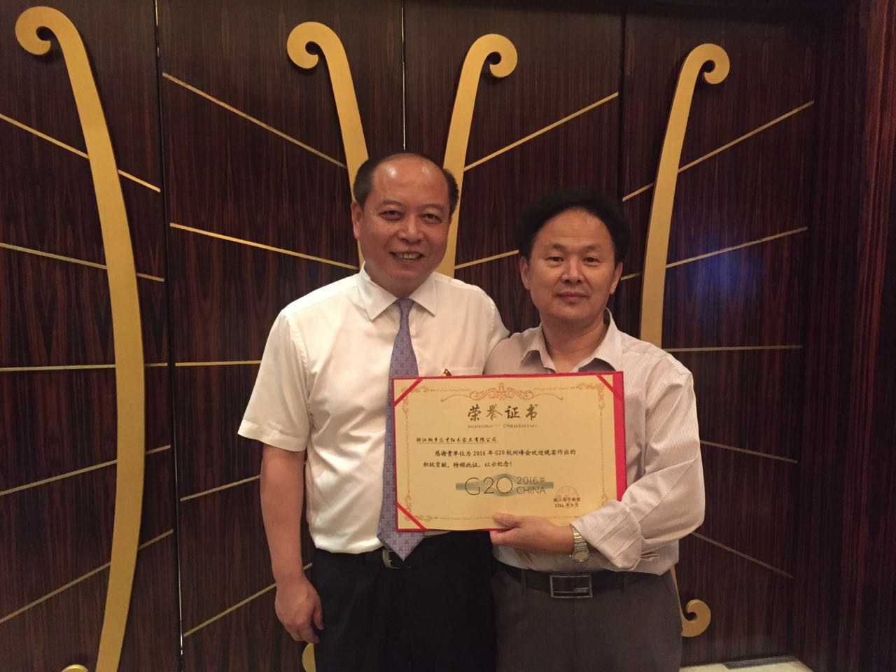9月29日,汇才红木董事长潘福初应邀参加本次G20杭州峰会供应商答谢会,再次站在了领奖台上,获得峰会贡献奖荣誉证书,这是继9月23日荣获峰会贡献奖后的又一个奖项,也是对汇才红木为峰会提供300余件优质产品的褒奖和肯定。