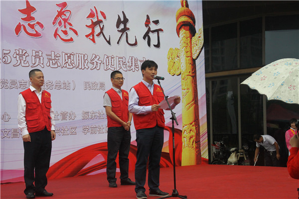 梧桐街道下属各村、社区、机关直属、学校和两新党组织的党员志愿者代表参加活动。汇才红木党支部书记徐富根带领党员代表参加活动。