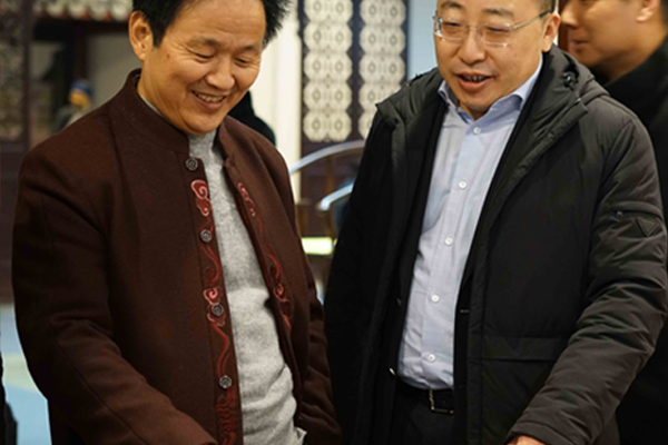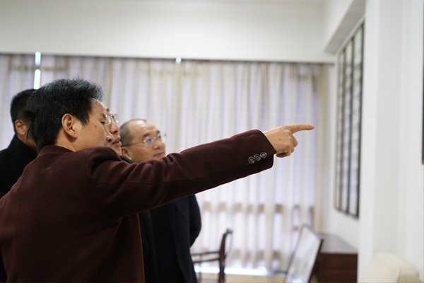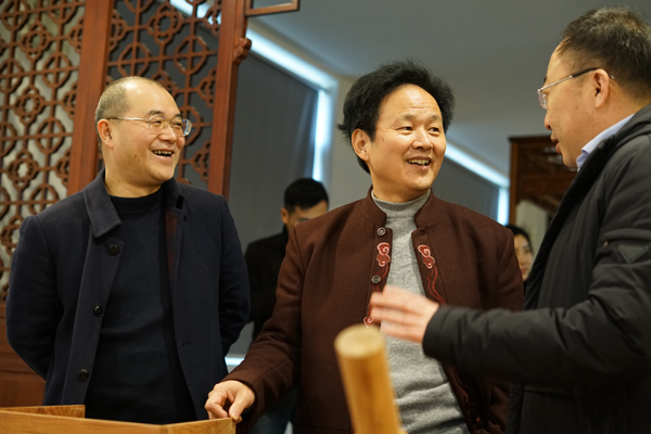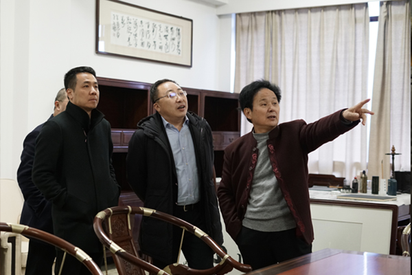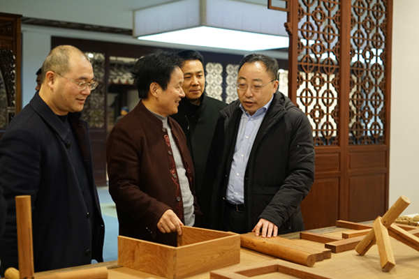 1月16日,嘉兴市委常委、副市长鲍九生等莅临汇才红木调研指导。桐乡市副市长戚鸿峰等陪同调研。汇才红木董事长潘福初接待并陪同。