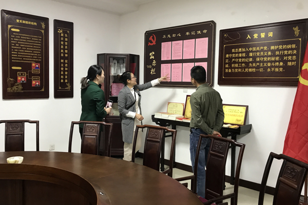 领导们实地查看了公司的党建宣传栏、红色长廊、党员活动室、党员高技能人才工作室和党群联心室等红色阵地,对公司党建工作给予了充分肯定。特别是党员活动室结合红木文化、红木元素的全新改版和党员高技能人才工作室的成功运作,党群联心室的谈心活动等,获得了领导们的点赞和一致好评。