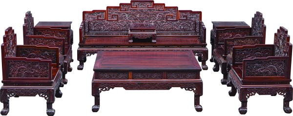 汇才红木参加2018中国(杭州)红木家具精品博览会,参展作品云龙纹沙发荣获“金奖”